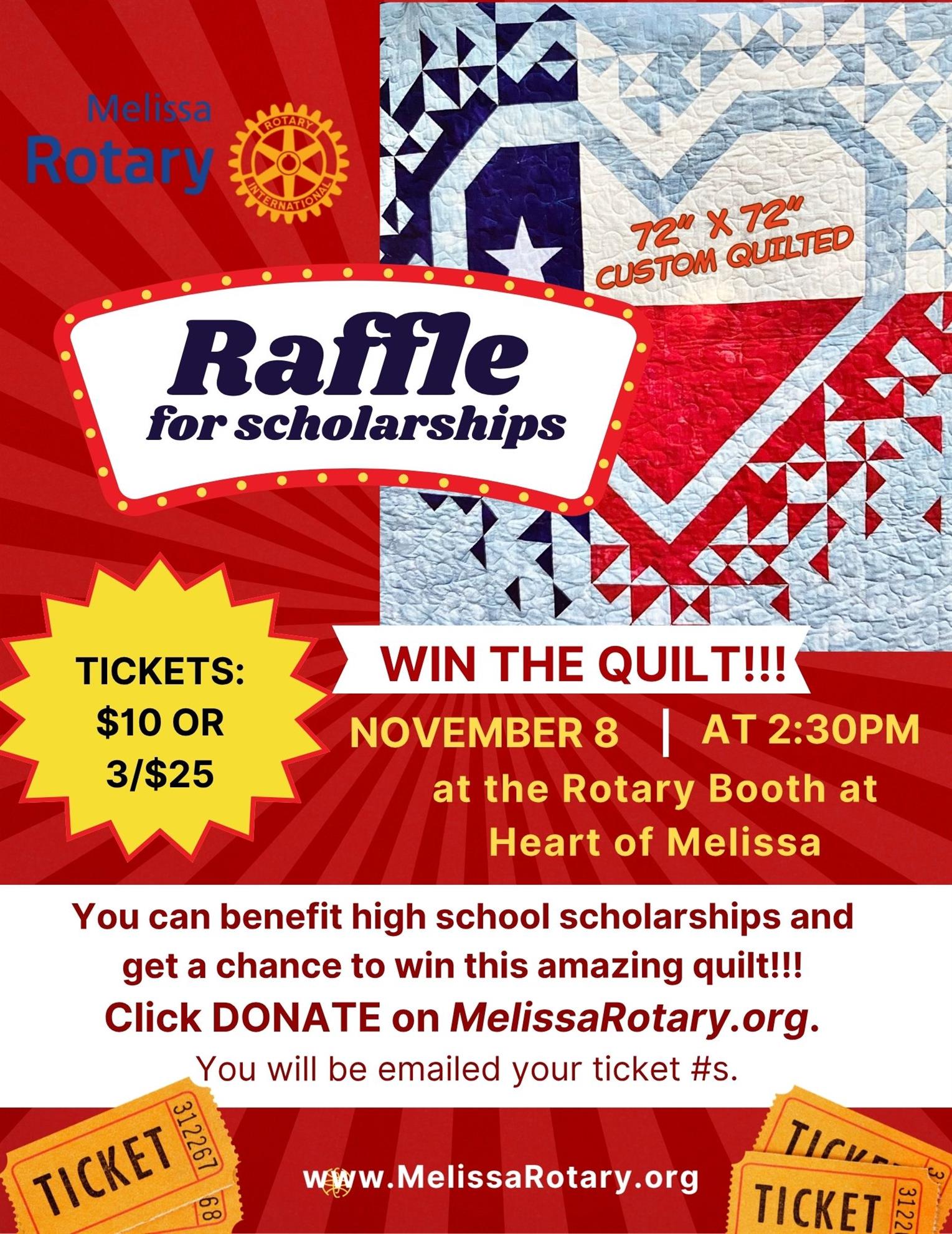 DONATE before the drawing at the Heart of Melissa on November 8th !! -- https://www.melissarotary.org