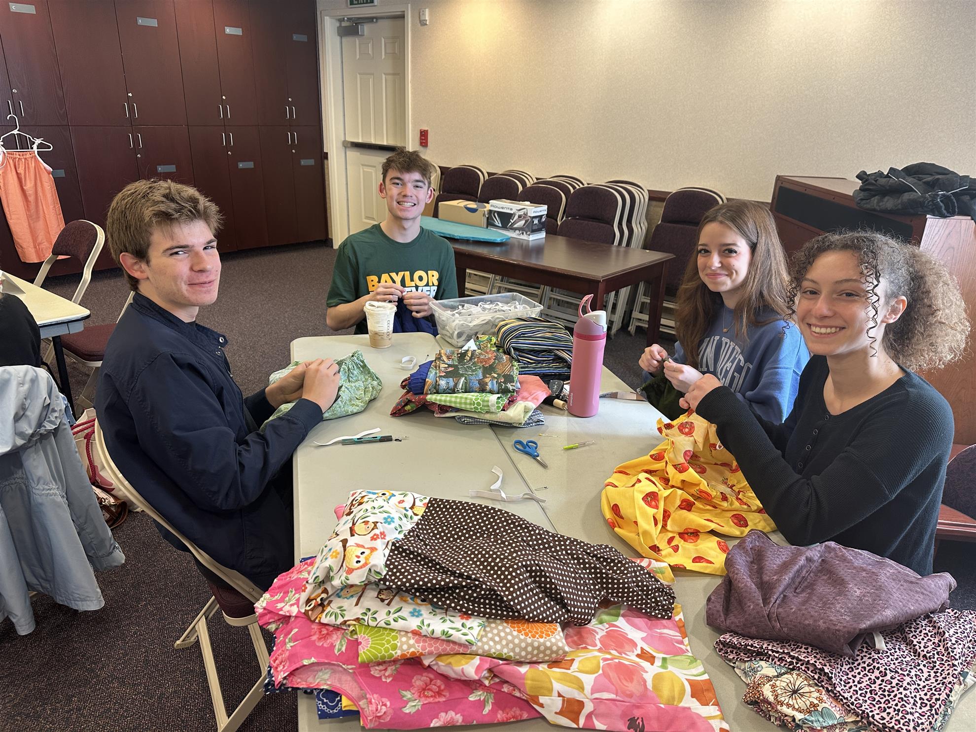 Last year the Melissa High School Interact Club pulled together materials and individuals in several shifts two Saturday workdays for their service project making Little Dresses for Africa. https://littledressesforafrica.org
